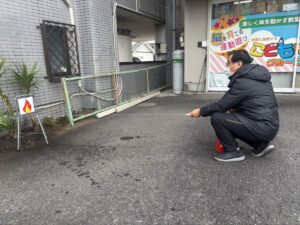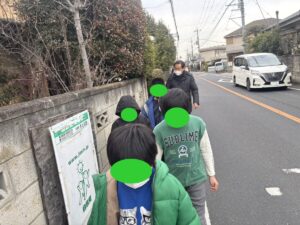外へ避難した後は第三中学校へ向かい避難経路を児童たちと確認しました。