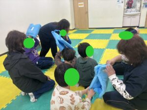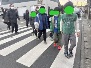 (今回はスムーズな移動の為、防災頭巾は付けずに移動しました)