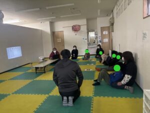 今回も事前教育として避難する際の心構えや注意点をパワーポイントのアニメーションを使って伝えました。