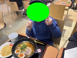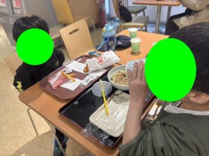 その後は原っぱでボール遊びや鬼ごっこを楽しみ、昼食はイオンのフードコートで摂りました♪
