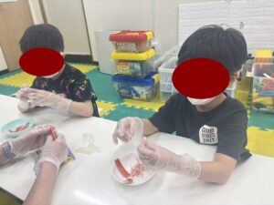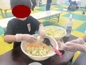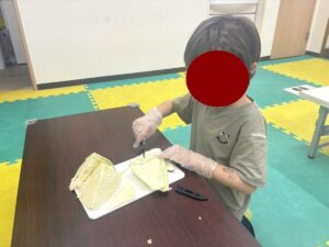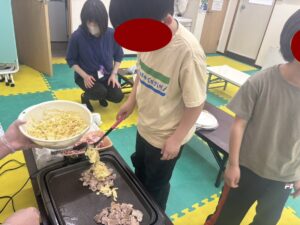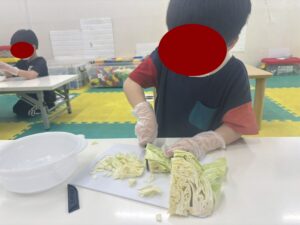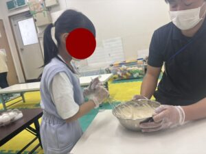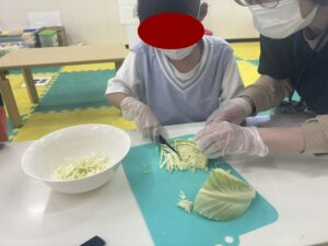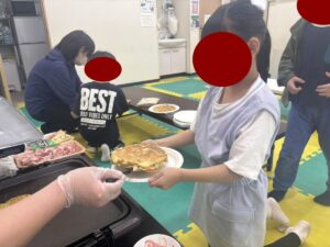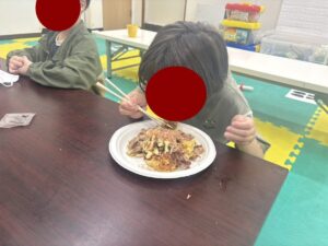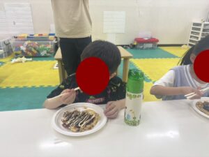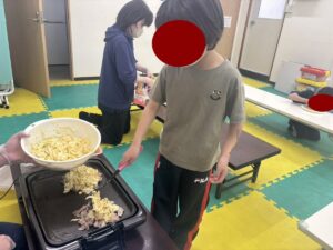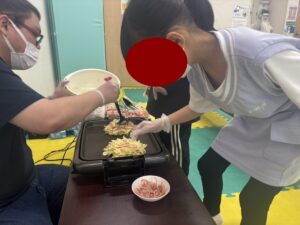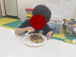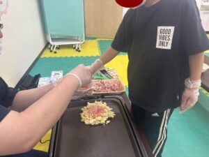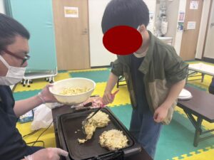 この日は教室でお好み焼き作りをしました。